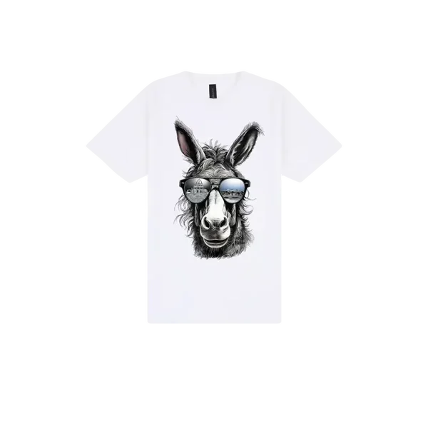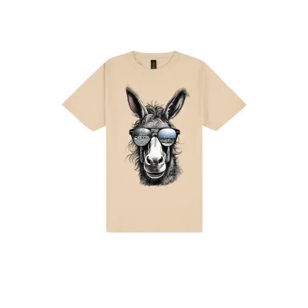 Meet the original legend that started it all — Yo Donkey. This beige cotton tee features a charismatic donkey rocking reflective sunnies that capture two scenic worlds: one side shows a classical dome-topped building, the other a laid-back landscape. It’s a cheeky nod to travel, personality, and the joy of seeing the world through a donkey’s eyes. Printed with breathable DTF technology on premium cotton, this shirt is soft, durable, and full of character. Whether you're strolling the streets or dreaming of Santorini, this tee brings the vibe.