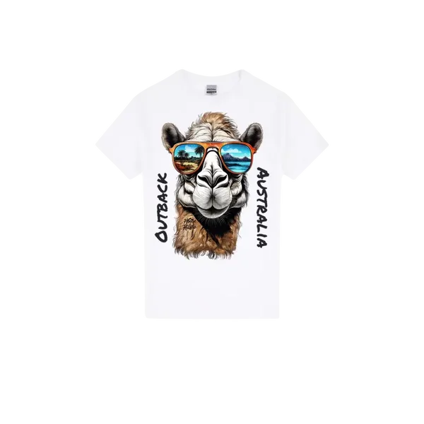 This laid-back legend knows how to travel in style. Our High Heat camel T-shirt features a sun-loving camel rocking reflective sunnies that capture two iconic landscapes — one lens shows the Aussie outback, the other a dreamy oasis escape. With “OUTBACK” and “AUSTRALIA” framing the design, this tee is a tribute to adventure, wanderlust, and warm-weather vibes. Printed on soft, breathable cotton using high-quality DTF technology, it’s built for comfort and packed with personality. Whether you're desert-bound or finding an oasis, this camel’s got your back.